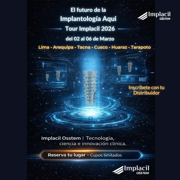 El Tour Implacil Osstem del 02 al 06 de marzo, En las ciudades de Lima, Arequipa, Cusco, Tacna, Huaraz, Tarapoto, estaremos con lo último en implantes dentales premium. Un evento exclusivo para profesionales, donde presentaremos tecnologías de osteointegración rápida, y mucho más...